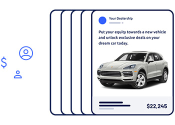 Fullpath Equity helps dealers activate their equity data without lifting a finger by identifying your equity positive shoppers and matching them with relevant offers and payment options based on data pulled from your DMS, CRM, trade-in APIs and other data sources and integrations. Fullpath then automatically targets your shoppers with hyper-personalized ads, emails, and landing pages based on their equity status to drive more sales for your dealership.